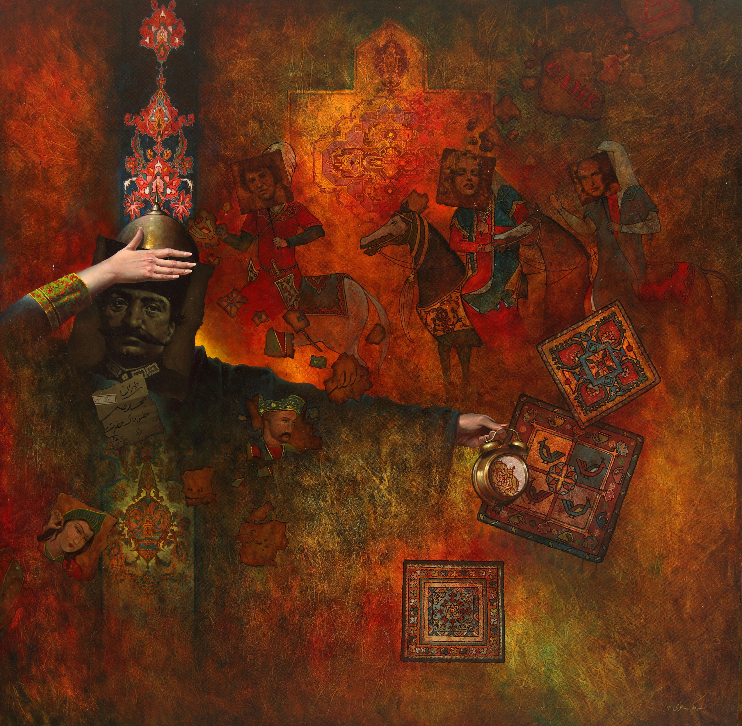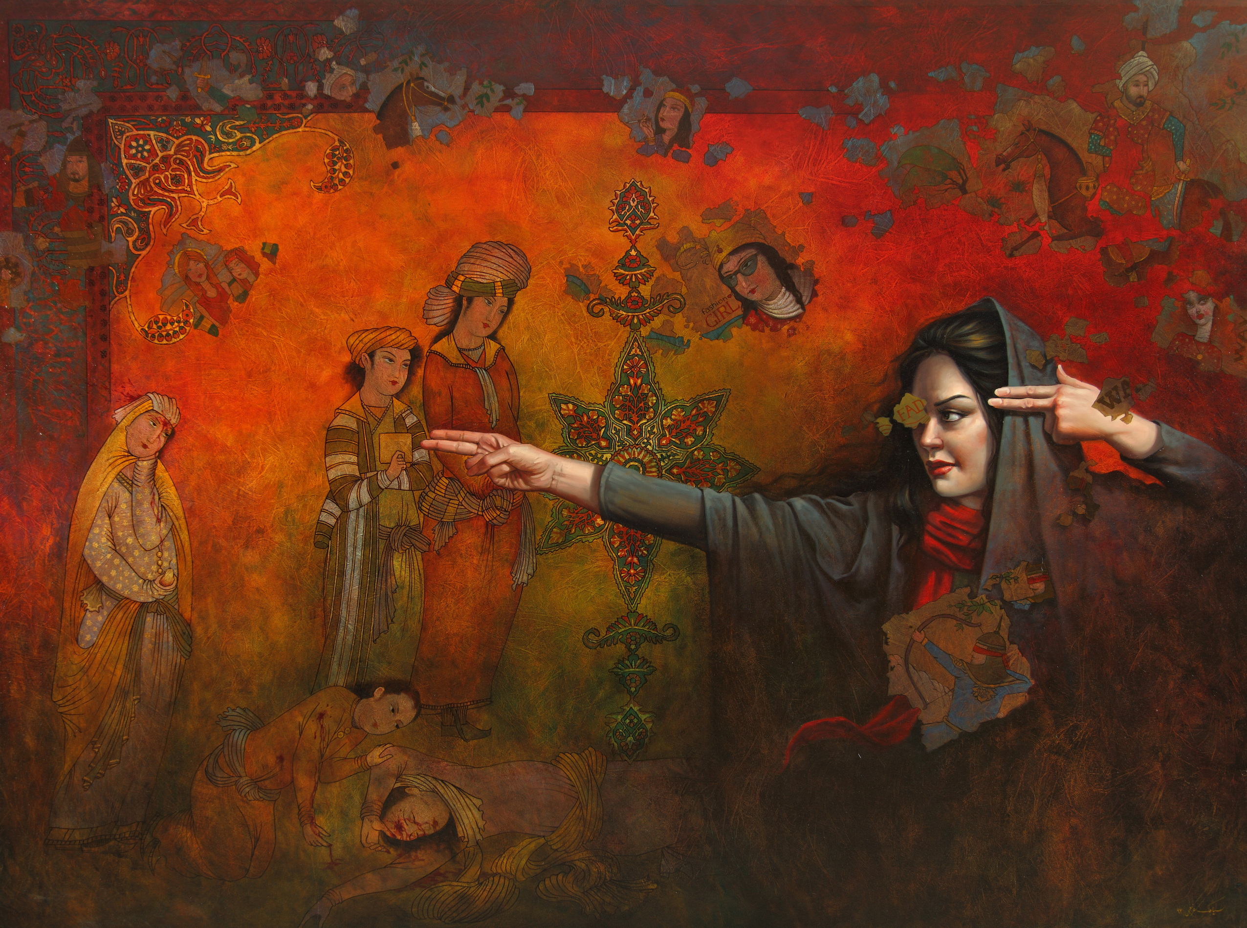 Within layers of color and pattern, history drifts like a restless spirit, merging with the contemporary moment.