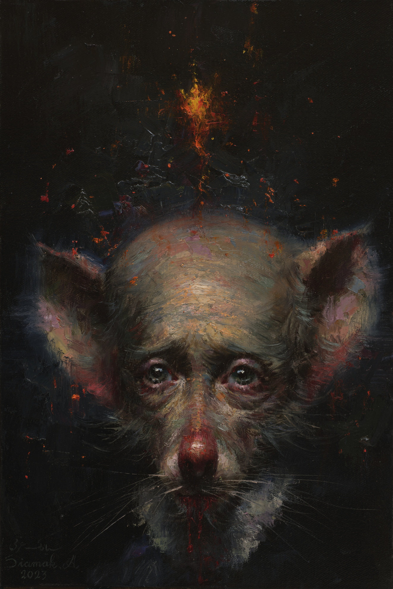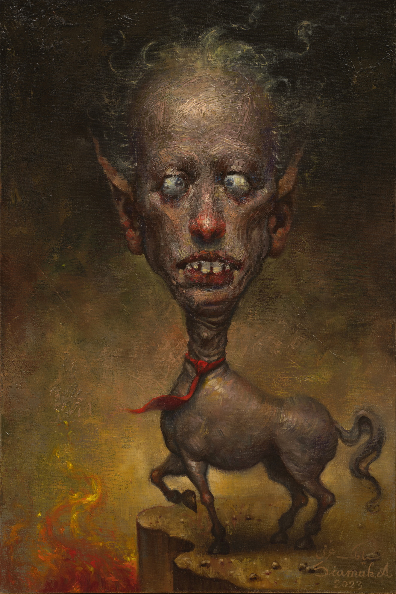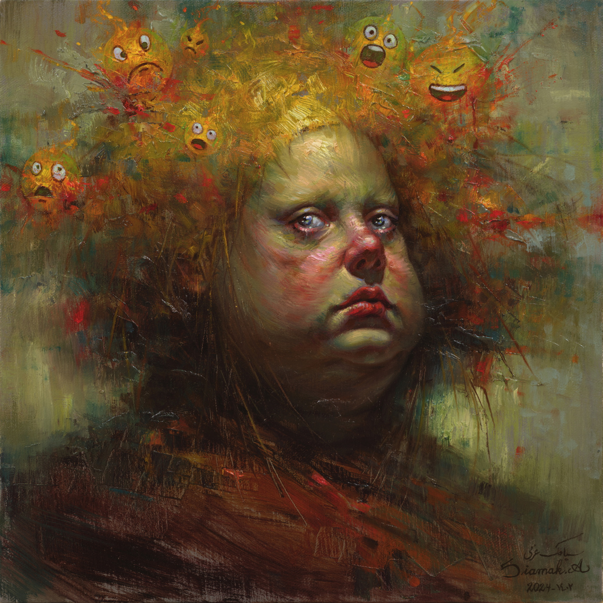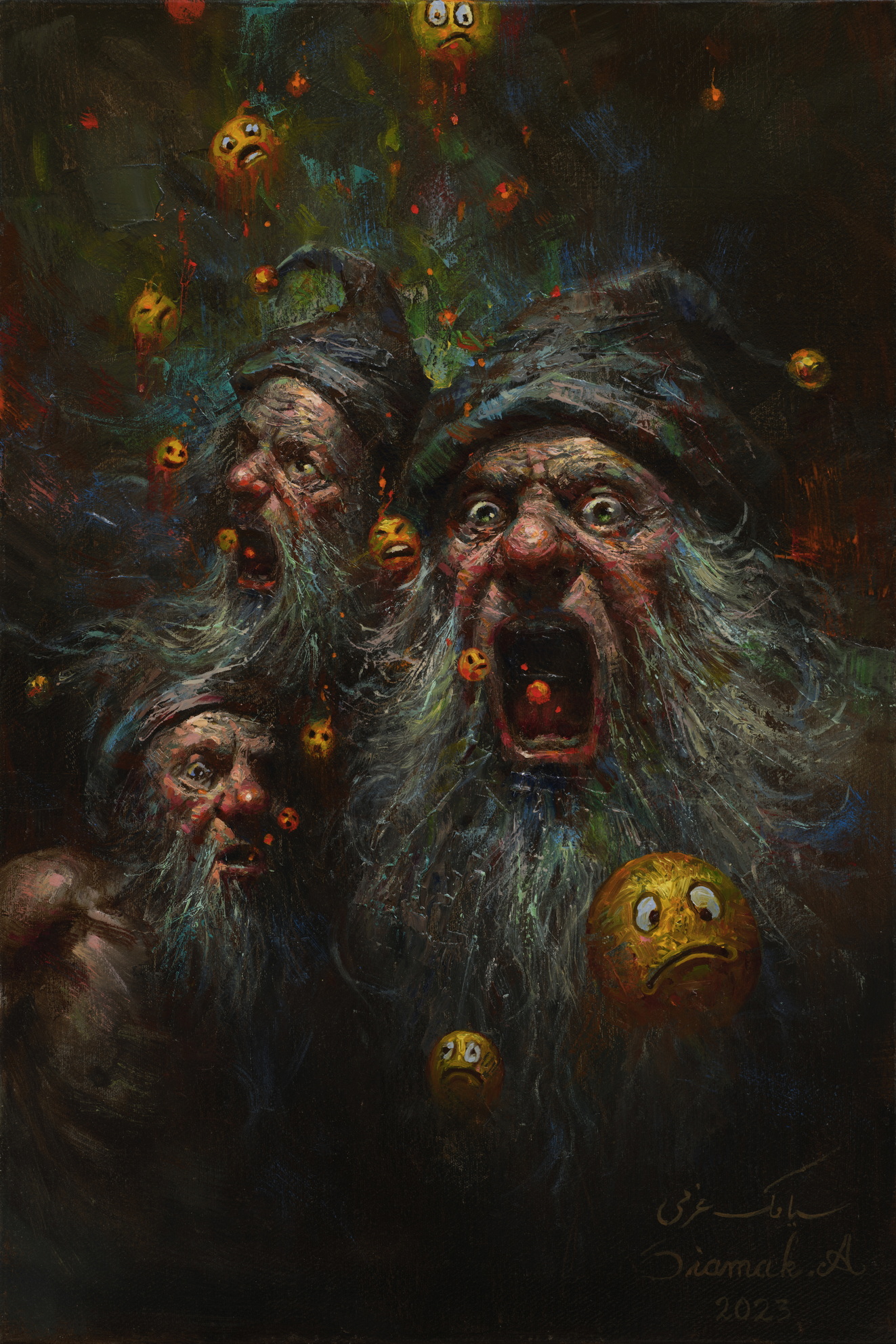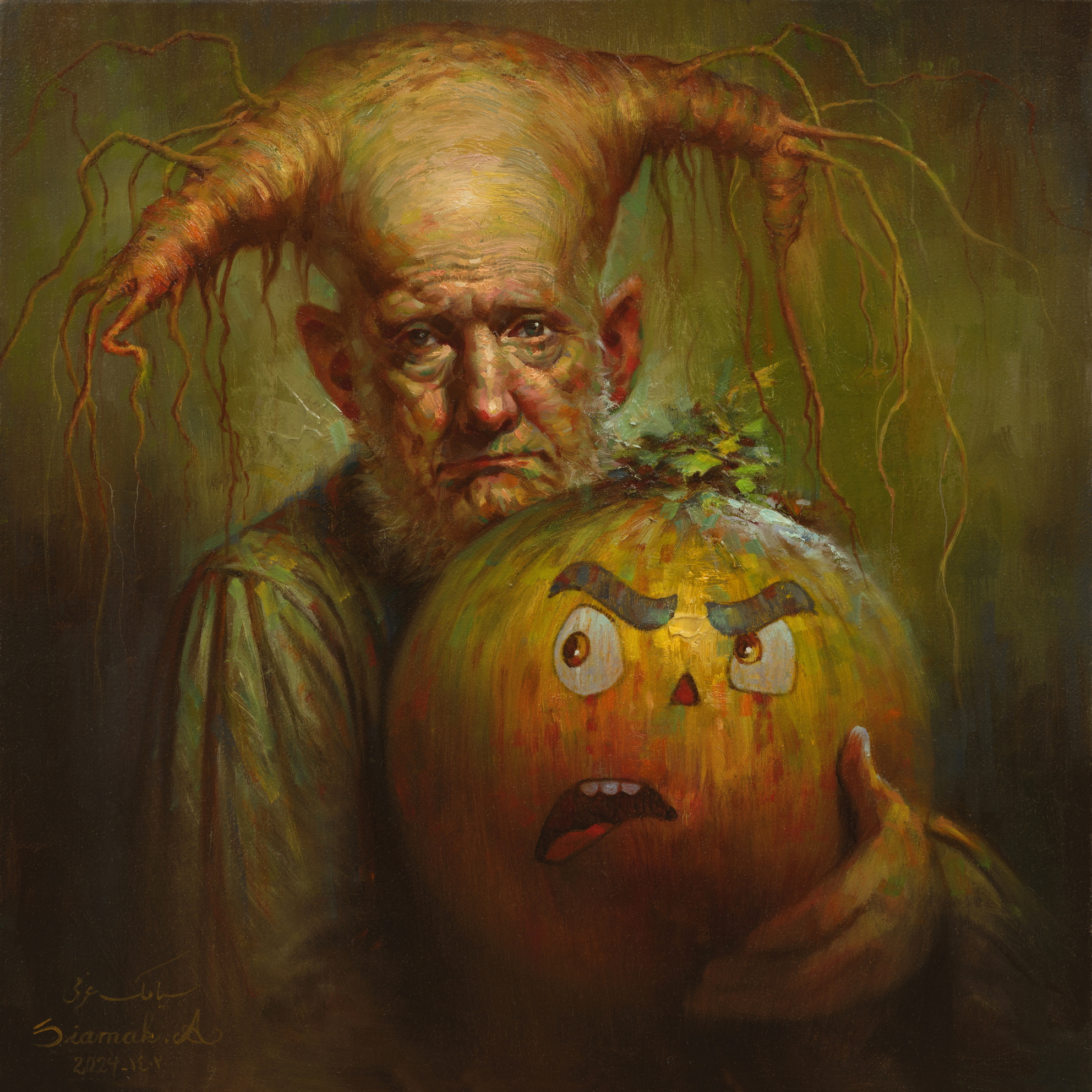 This collection speaks of the human of our age a soul who, through a concealed journey, becomes emptied of its own essence and is transfigured into a form not born of its origin.The figures, standing upon the threshold between the human, the distorted, and the bestial,are signs of a fall:the surrender of the inner self to illusion, to the shadow of imagination, to the echo of imitation.Transmutation is a contemplation of that subtle moment when the human being is no longer the bearer of the divine breath,but a mirror reflecting only the world’s image a visage estranged from its own source.